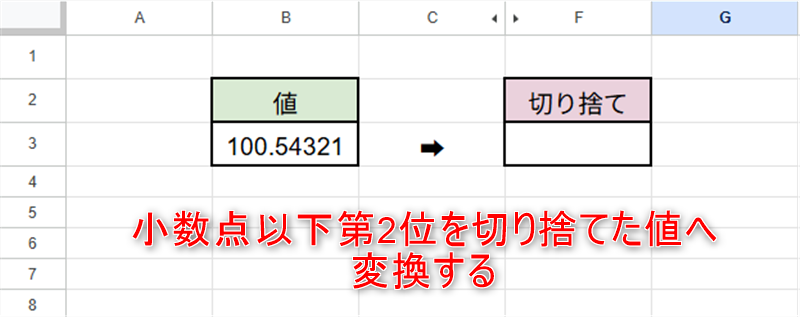 サンプル:小数点以下第2位を切り捨てるとします。